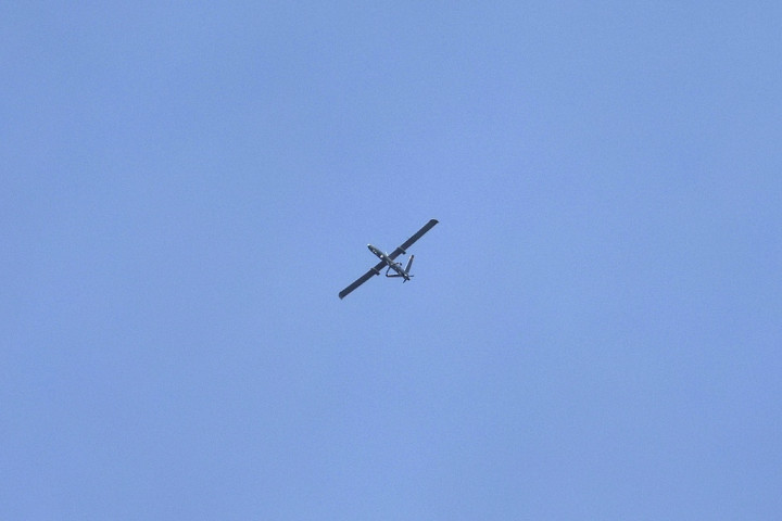 当地时间2025年1月19日,以色列-加沙边界,一架以色列军用无人机在加沙北部贝特哈努镇上空飞行。视觉中国 图